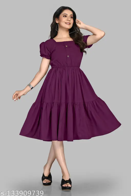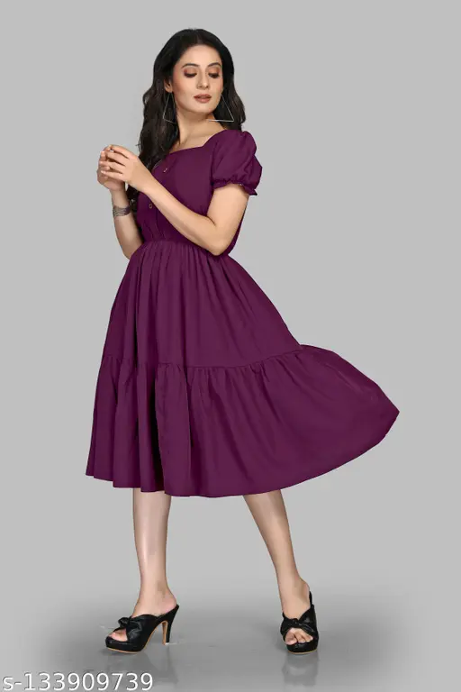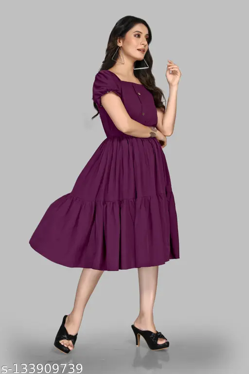 Pravya fabric Women Fancy Maroon Crepe Dress
