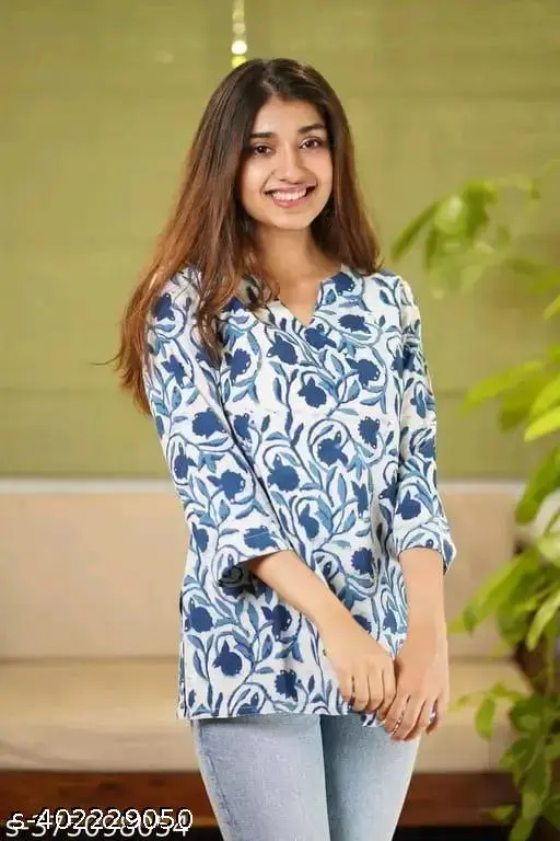 Name : Cotton Hand Block Printed Short Kurti Kurta Shirt Top for Women