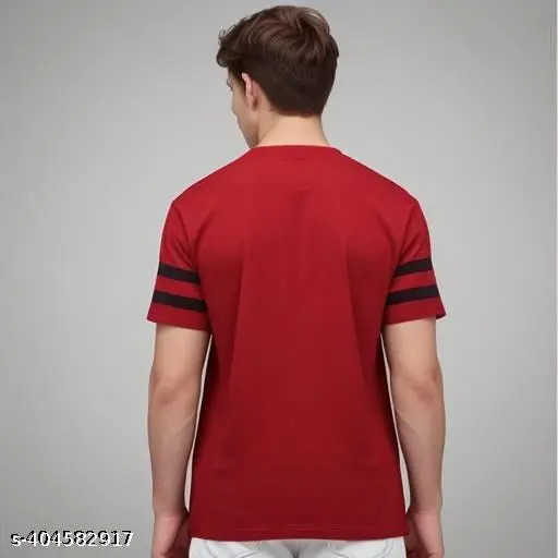 Name : MEN STRIPED ROUND NECK POLYESTER RED TSHIRT