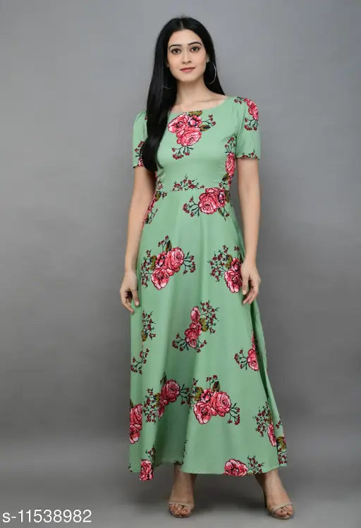 Stylish Cotton Printed Anarkali Dress with Pom Poms